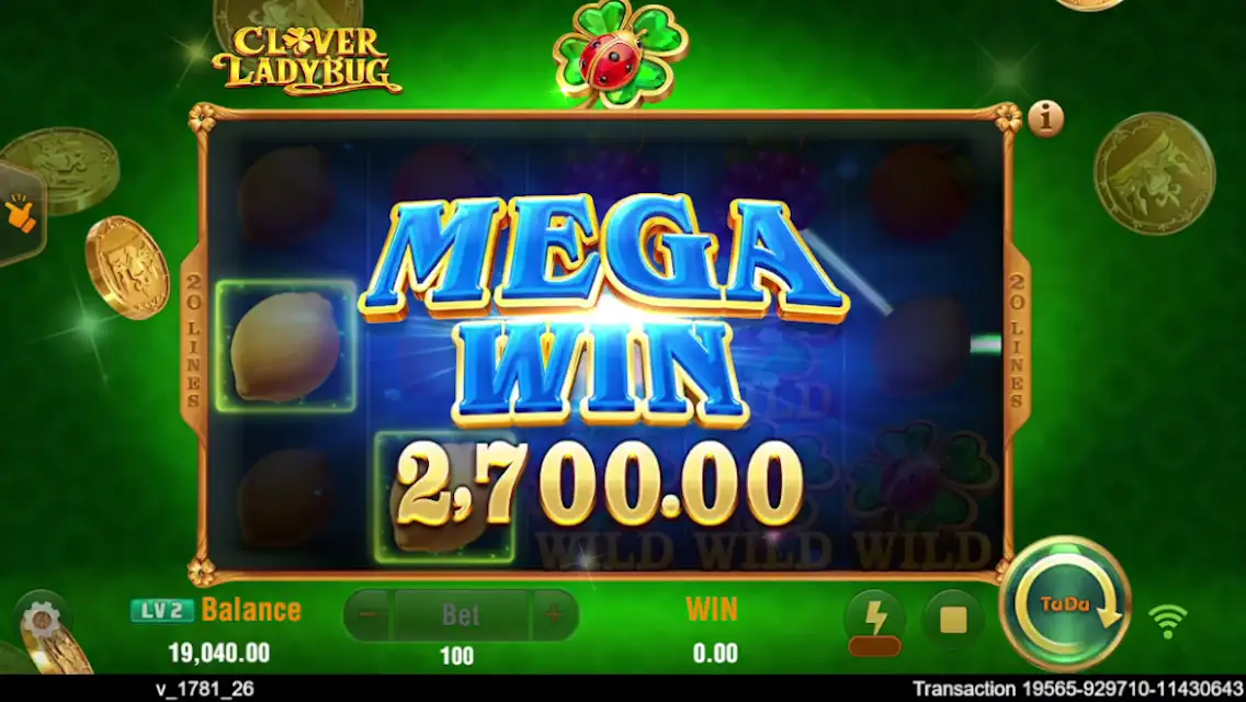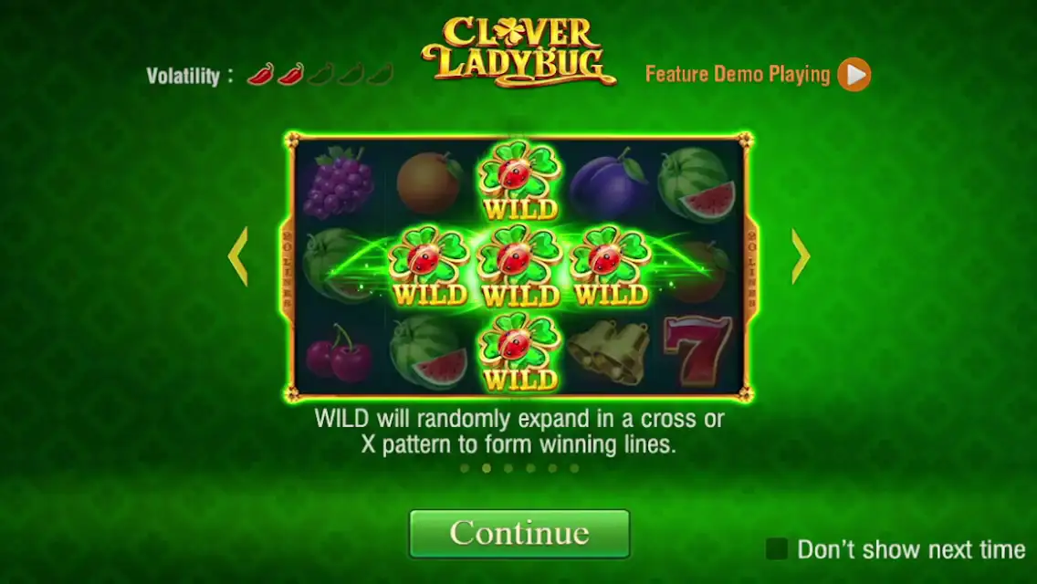 Ladybugs glide in with gleaming lucky clovers to bring you luck!When Ladybugs and Clovers land together, they transform into WILD symbols that expand and boost your chances to win.Clovers may release Ladybugs that deliver Multiplier WILDs, unleashing endless luck and awarding massively multiplied prizes.