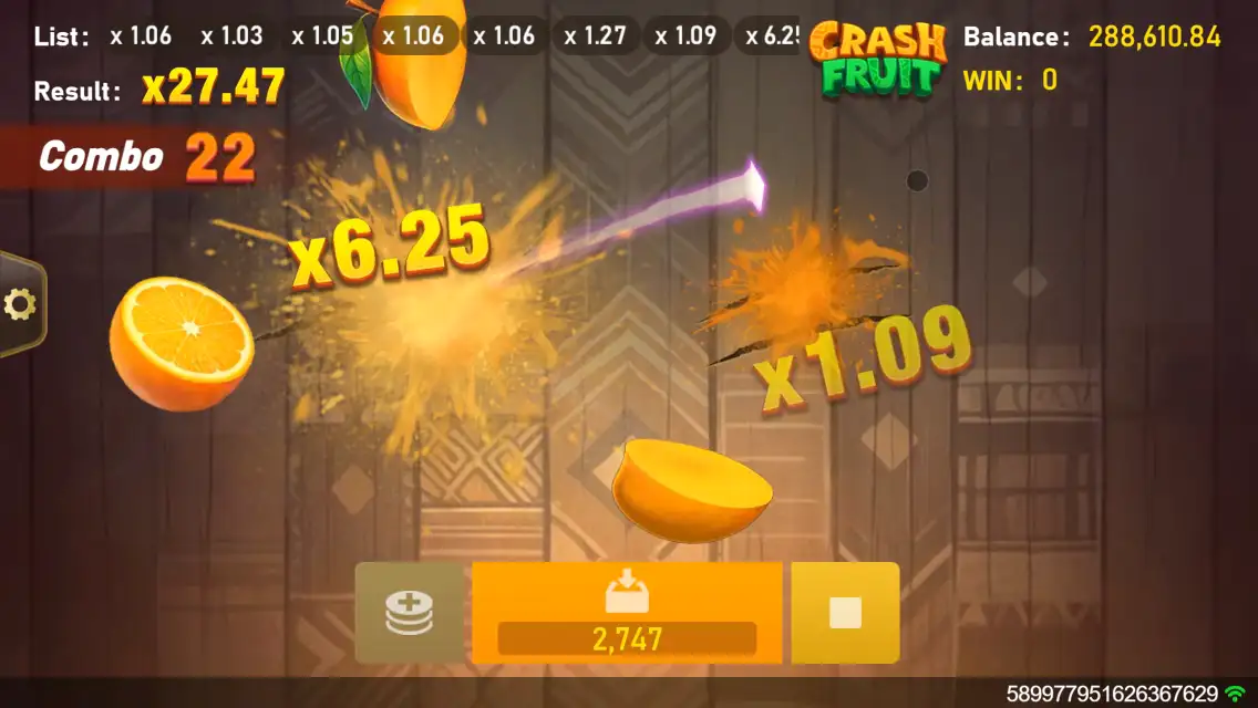 “Crash Fruit” combineert fruitsnijden met risicobeheer in een snelle gameplay. Nadat je hebt ingezet verschijnen de vruchten onderaan; door ze door te snijden onthul je een verborgen vermenigvuldiger die direct aan de ronde wordt toegevoegd. Bij elke winst kun je kiezen om door te gaan of uit te cashen — verschijnt x0, dan is de ronde voorbij. Gebruik Freeze om de huidige opgebouwde vermenigvuldiger als minimale garantie te vergrendelen;Bonus is een modus met grote vruchten waarbij geen x0 voorkomt en de uitbetaling apart plaatsvindt na afloop. De totale vermenigvuldiger kan oplopen tot 10000x — verfrissend en spannend. De minimale garantie per ronde is 1x, een enkele vrucht kan oplopen tot 1000x;het tempo van doorgaan of stoppen ligt volledig in jouw handen, een test van moed en beoordeling. Stijlvol en makkelijk oppikken.