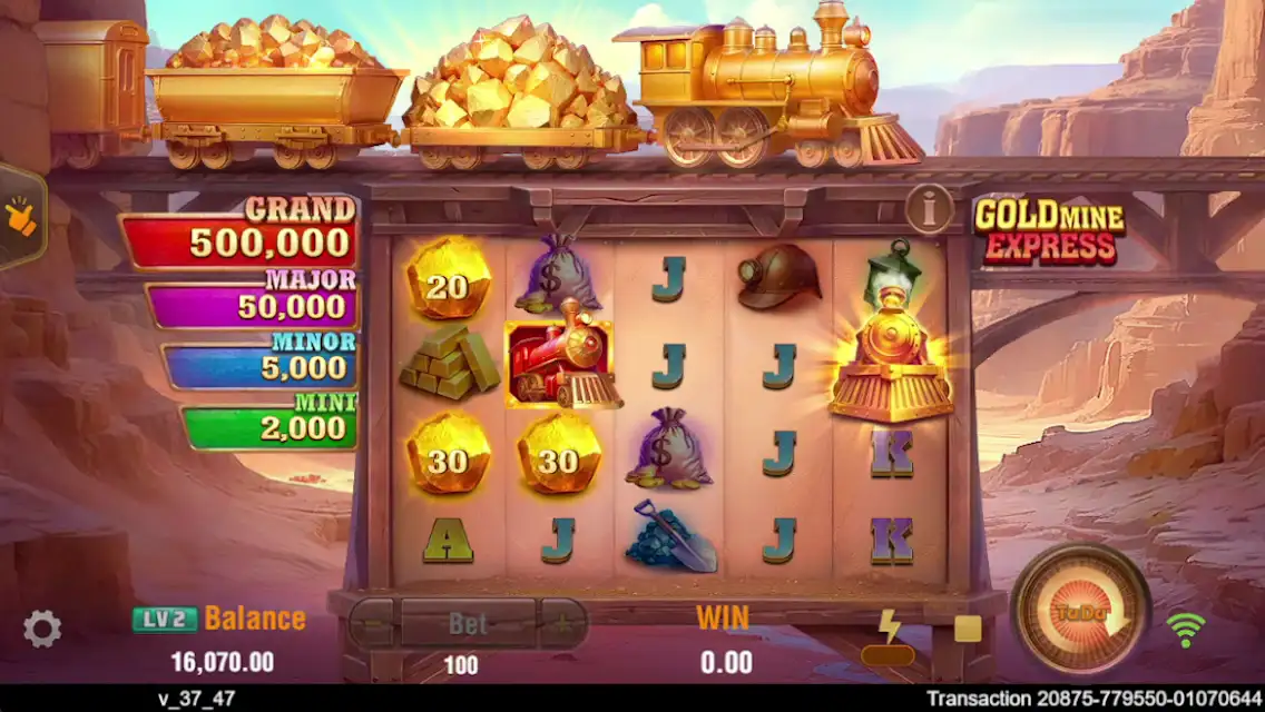 Садитесь на 《Золотой экспресс》 и мчитесь прямо к вершине богатства! Слот «Золотой экспресс» — динамичное приключение на тему золотодобывающего поезда с непрерывными наградами. В базовой игре и в бесплатных играх каждый спин может запустить Функцию Поезда. Когда Поезд набирает ход, каждый вагон приносит щедрые выплаты. По мере продвижения Поезда выигрыши накапливаются; есть шанс сорвать Джекпот и получить множители, которые стремительно разгонят ваш общий выигрыш. Под свисток локомотива и взрывы золота на экране — готовьтесь вскочить в экспресс и пустить удачу на полную скорость!